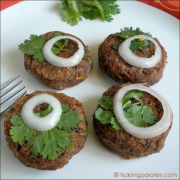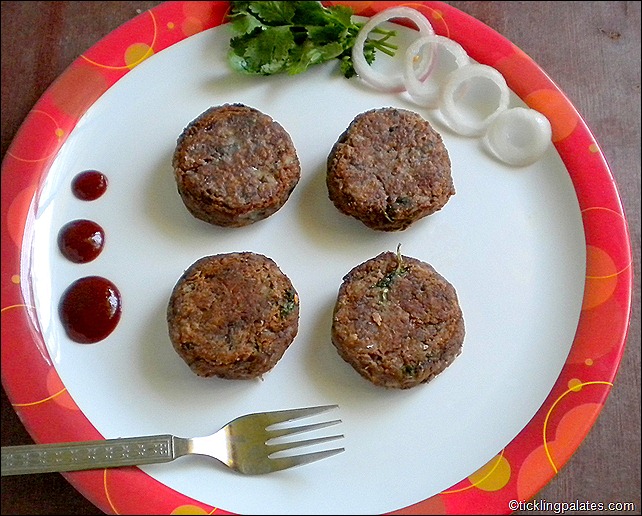 These tikkis make a wonderful snacks box item. You can pack these tikkis as it is or you can use this as a patty in a burger. Just cut the burger buns / dinner rolls horizontally. Toast them on a griddle, apply mint chuntey on one half and the garlic chutney on the other half and place this tikki / patty in the middle and there you go.