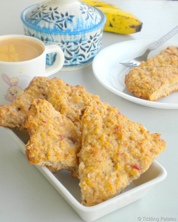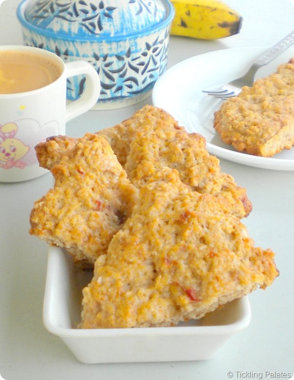 Since then I had always thought they were some thing fancy until I realized they were our very own biscuits. Though I made Bed & Breakfast scones for this month, I do not have access to my laptop in which those pictures are stuck which I will share later on. So I made these Banana Scones when I chanced upon them here. There were a lot of mixed reviews which helped me to decide on the exact way that I wanted the scones to turn out. These are so damn easy to make and would be a delight to gorge on whether it is for breakfast or as an evening tea time snack.