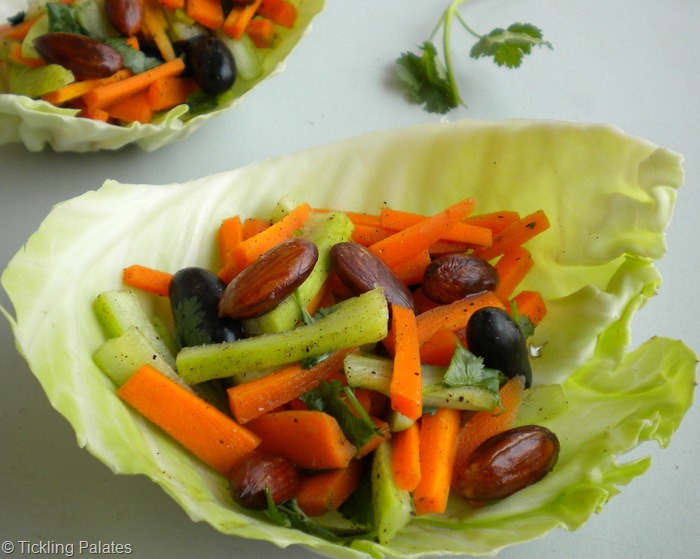 I guess it is something Indian, we like a small side salad of cucumbers, tomatoes, onions and at the most radish in winter with our meals. But here in the west salad is a meal in itself…I used to think I would be hungry in a jiffy…but they put so many different things in salads that you feel quiet full afterwards…of course the Americans have taken it to another level and made it as calorie heavy as any regular dish…lovely salad…I love nuts in salads, adds a nice crunch…