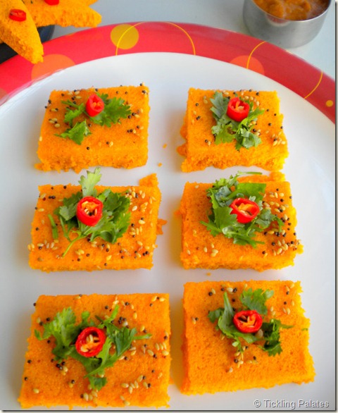 Tomato dhokla looks very colorful, perfect and yummy. Beautiful presentation.