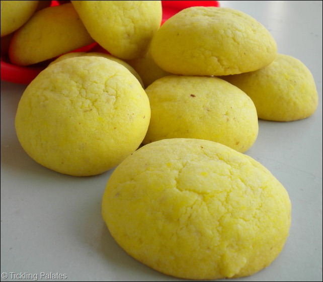 I had been shamelessly bribing my younger one for the past few days with fruit custard. It happens to be his favorite and the very word made him sit at home and study for the exams instead of wandering around the Apartments with his friends in the hot glaring sun during the afternoons. Just a few table spoons were left in the carton while I was cleaning up the pantry and I decided to use it in a cookie as I did not bake a cookie after the Oatmeal Raisin Cookies. I kept it very simple with just a handful of ingredients and it came out very well.