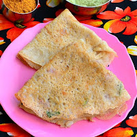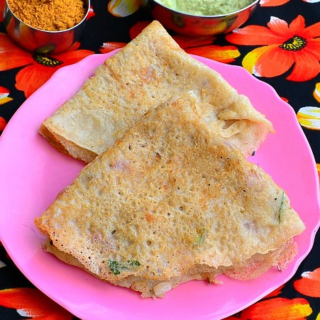 - Fold and transfer to a plate and serve with coconut chutney and idli milagai podi.