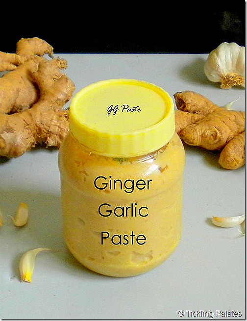 Ginger Garlic paste is such an integral part of any Indian Cooking and I can’t imagine having to cook certain dishes without this paste. According to my Grandmother there is a logic behind using ginger and garlic paste to any dish. Ginger, being big in size than when compared to garlic diminishes in volume when made into a paste whereas garlic increases in volume when ground to paste. So she would always advise on using fresh paste ground especially for the particular dish instead of grinding them in bulk and storing them.