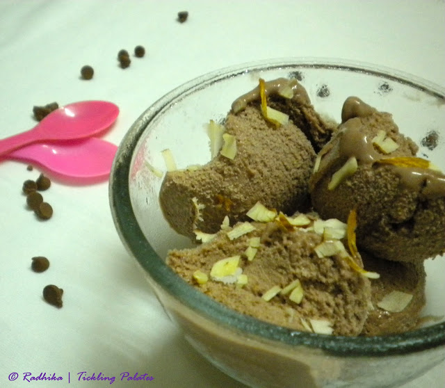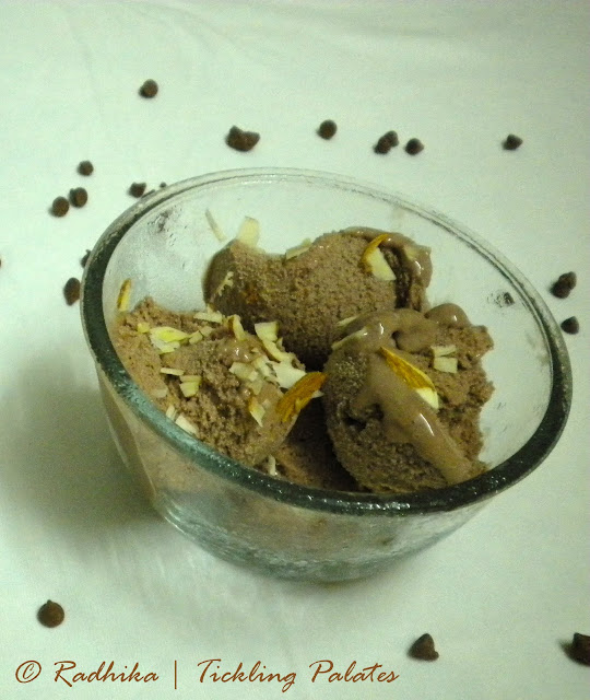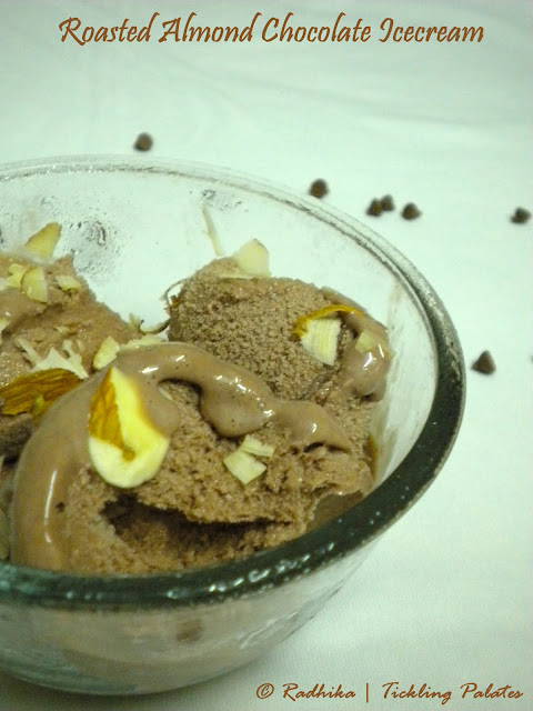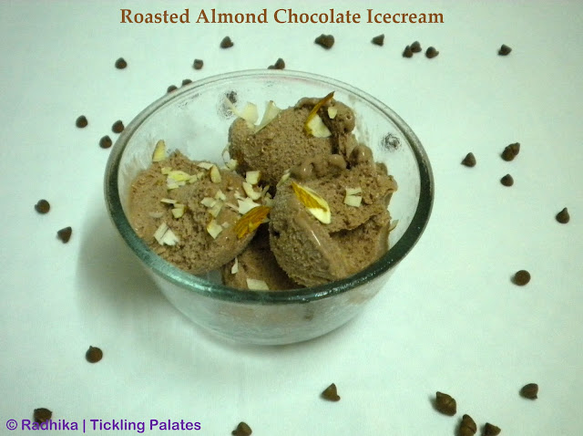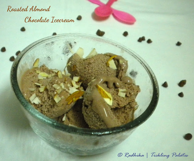 Chocolate icecream with roasted almonds looks absolutely irresistible,feel like finishing that bowl..