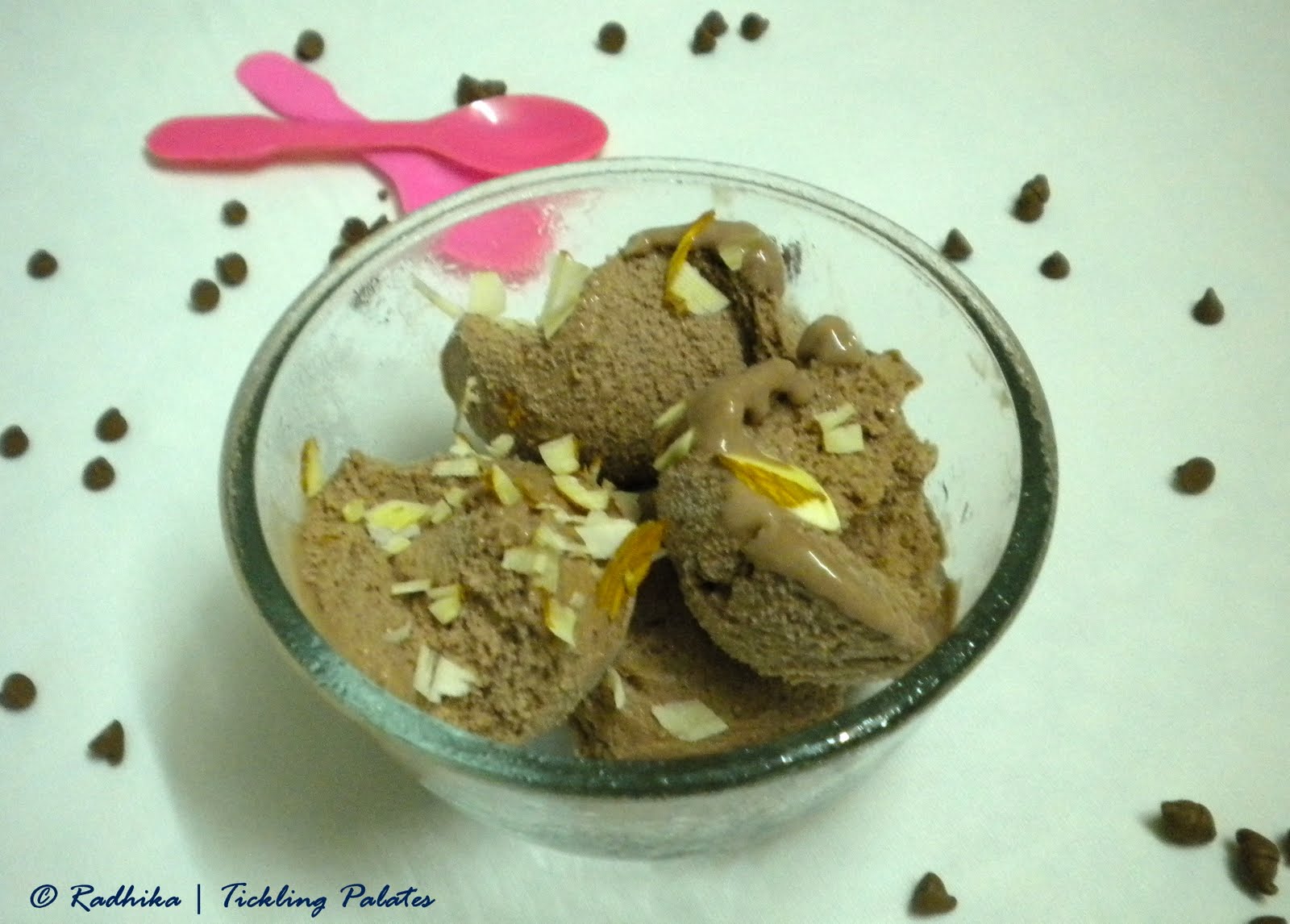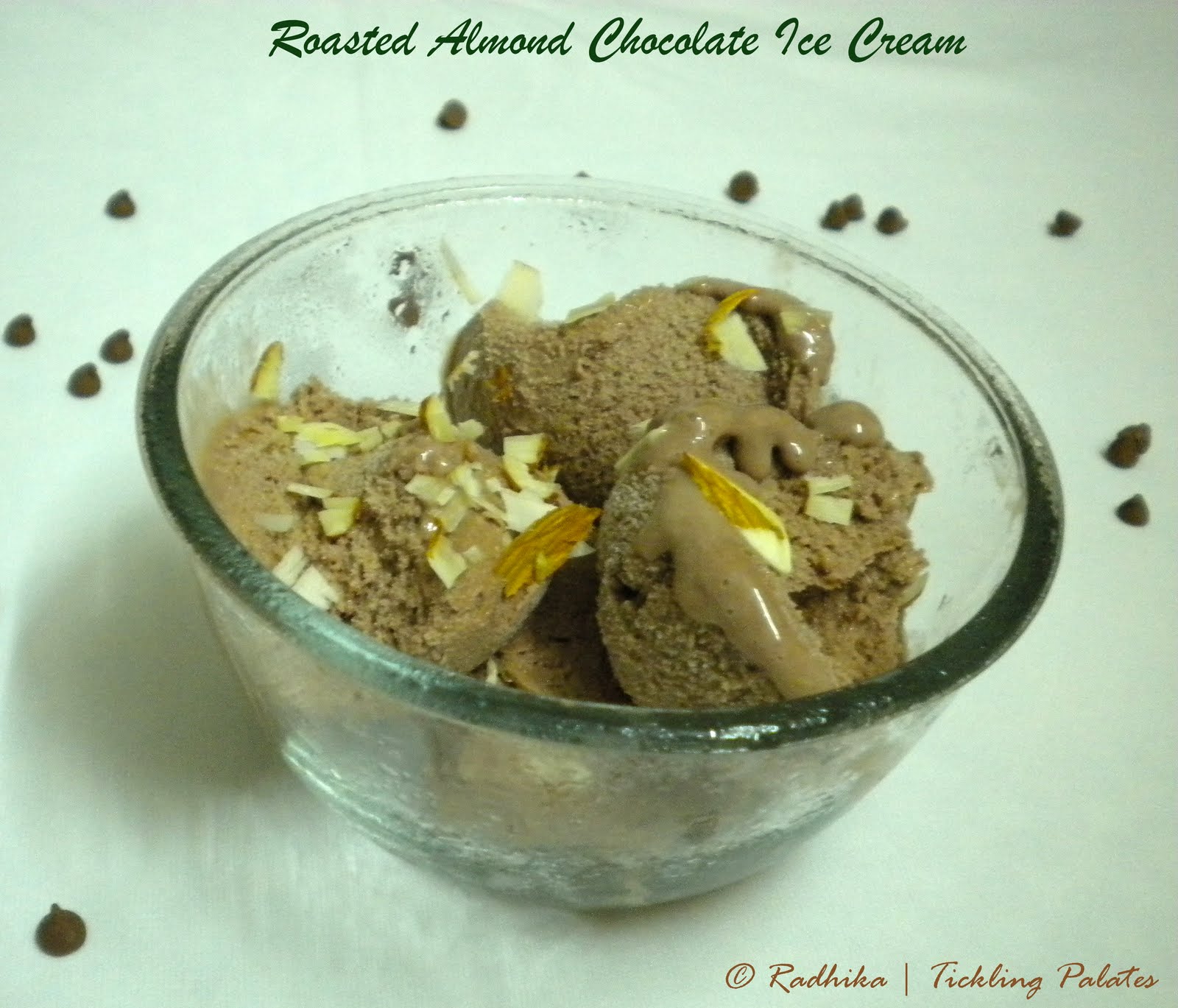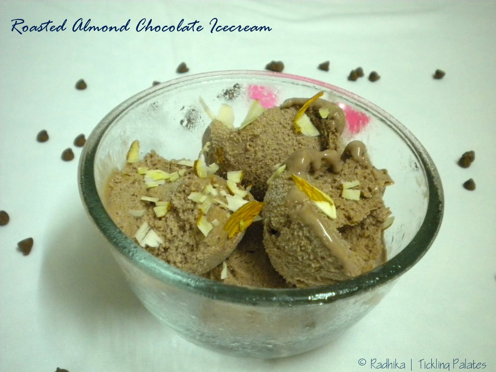Chocolate icecream with roasted almonds looks absolutely irresistible,feel like finishing that bowl..