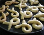 11. Arrange the shaped cookies on to baking tray leaving enough space between them. Rest them for about 20 minutes or so till they rise/ puff up slightly. They do not raise that much despite using yeast.