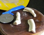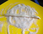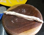 8. Once more roll one part into a thin shaped rope or into a bread stick with your palm to and fro.