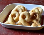 Torcetti/ Torcettini are believed to have descended from Grissini (breadsticks) which were made from the leftover scraps of bread dough. According to one story, a Grissini baker had some leftover butter which he needed to use up. Inspiration struck and he decided to add the butter to the last batch of his Grissini dough for the day. To be able to differentiate this lot of “breadsticks” from his Grissini, he rolled them in sugar and shaped them into loops, and the Torcetti was born. Torcetti/ Torcettini are usually flavoured with either lime/ lemon zest or anise.