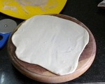 6. The next day divide the dough into 3 parts. Roll one part of the dough into a round shape and roll it like a mat.